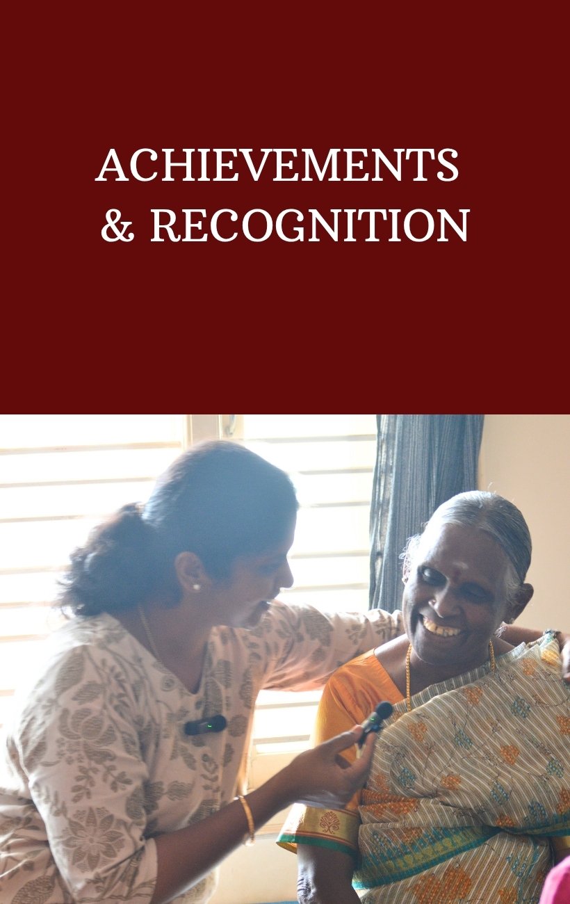 For Individual Contribution and Outstanding Achievements in Elder Care - By Global Achievers Foundation.